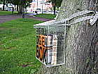 Wir fanden sogar eine preiswerte Box, um die Frischkäsepackung darin unterzubringen - eine Maßnahme gegen auslaufende Molke, die uns sonst das halbe Topcase vollkleckert. Wir brachten die eingekauften Sachen zum Zelt, und fuhren wieder in die Stadt. Dort durchstöberten wir die Outdoor-Ecke eines Sportkaufhauses, kauften für Jacques eine Schirmmütze, und holten aus dem Presse-Kiosk am Bahnhof eine deutsche Zeitschrift. Dann gingen wir zum Hafen, der uns Hamburgern befremdlich vorkam. Aus irgendeinem uns unerfindlichen Grunde war die Hafenmauer dort extrem hoch, sodass man keinerlei Aussicht auf den Vätternsee hatte. Innerhalb dieses ummauerten Areals gab es einige Restaurants mit zum Teil billigen, zu eng aufgestellten Klappstühlen, die allesamt nahezu leer waren.