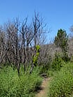 Aber es gab auch positives zu sehen. Überall zwischen den verkohlten Büschen und Bäumen sprießte frisches Grün und Blumen. Von den Wurzel der toten Bäume wuchsen neue heran und hatten teilweise schon eine beträchtliche Größe erreicht, aber es wird wohl noch Jahrzehnte brauchen, bis der Wald seine urspüngliche Form erreicht hat.